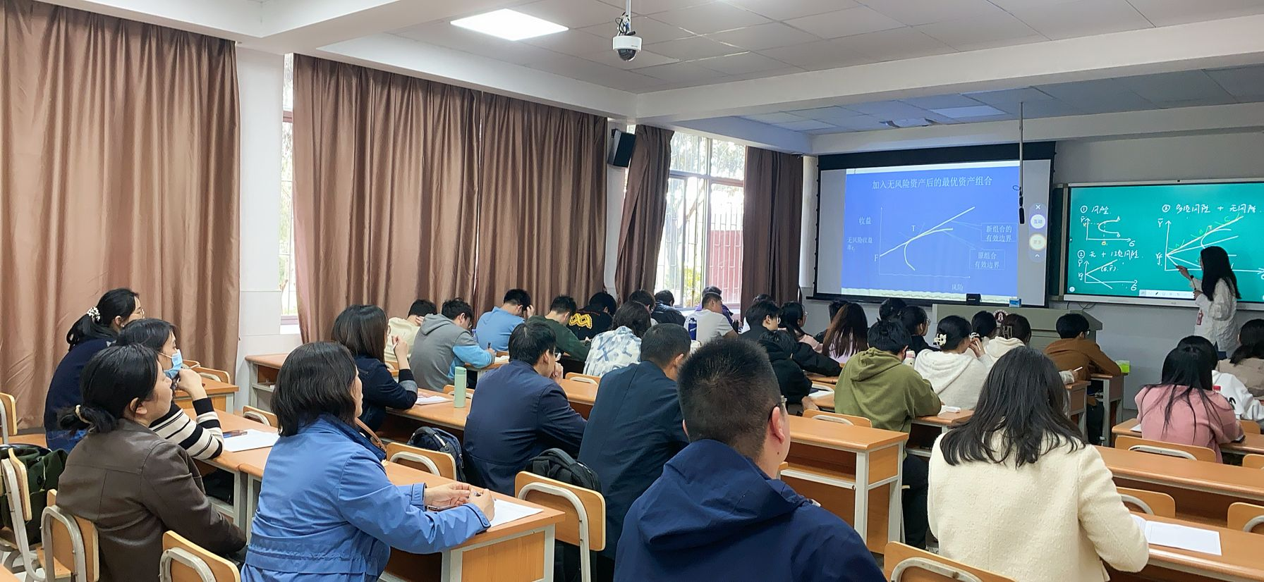 4月初,学院组织开展青年教师公开课观摩活动,钟婉玲博士和秦玉奇博士分别讲授《证券投资学》和《数智财政管理》课程,副院长管敏、校院两级教学督导代表和新进博士参加。