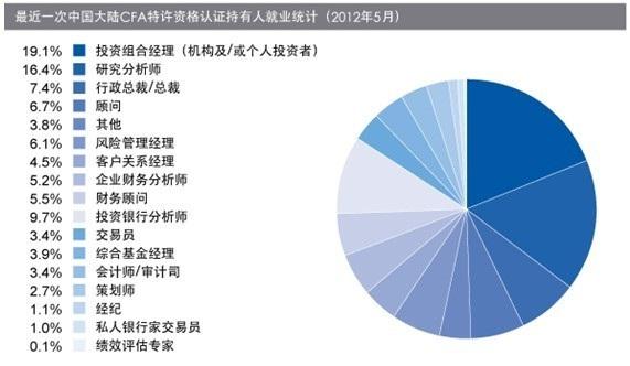 国内CFA持证人最大雇主:普华永道、中国银行、中国工商银行、中国国际金融有限公司、汇丰银行、中国中信、法国巴黎银行、瑞银证券、德勤、安永会计师事务所、中国平安保险、招商局集团、国泰君安证券股份有限公司。