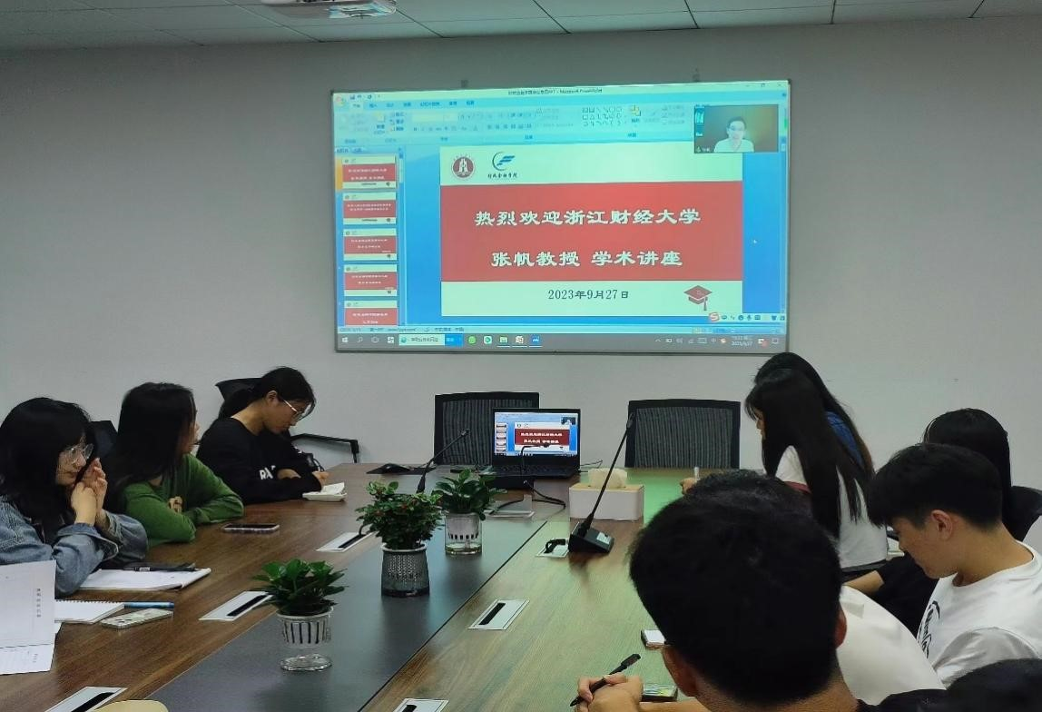 2023年9月27日,学院数字经济和财税治理研究所采用线上线下结合方式举办学术讲座,讲座邀请浙江财经大学财政税务学院副院长张帆博士主讲,线下会场设在湘江楼B601会议室,龚旻博士主持,财税研究所老师、部分研究生和大学生财税协同学参加。