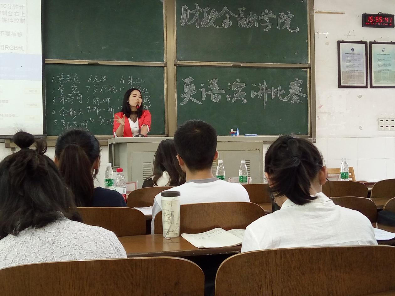 5月9日下午,财政金融学院2017年大学生英语演讲比赛在校本部乐知楼E201教室顺利举行。财政金融学院学工办蒋支流老师、刘人春老师、周向老师,以及部分学生干部担任比赛评委。