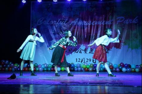 此次晚会的主题是“colorful musement park(缤纷游乐园)”,晚会上,有充满创意理念的电光舞,有体现专业特色的点钞比赛,有用多国语言演绎的歌曲合唱《告白气球》,有简单而不失趣味的近景魔术,有代表中国风格的集体舞蹈,有学霸与学渣之争的幽默小品,有酷炫时尚的集体现代舞,有分团委学生会带来的歌曲合唱《至少还有你》,还有新年红包大奖的微信抽奖环节。在座的师生们在欣赏一个个精彩节目的过程中喜迎新年的到来。
