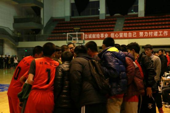 在两队的坚持不懈下,比赛一度进入白热化阶段。比赛紧张地进行着的同时,学院助威团的力量也不容小觑。他们一边有节奏地敲击着大鼓,一边组织助威团齐声高呼“财金无敌,所向披靡;财金最帅,王者不败”、“财金防守”、“财金加油”,整齐宏亮的口号声在体育馆内不断回响,也让比赛的气氛更为热烈。