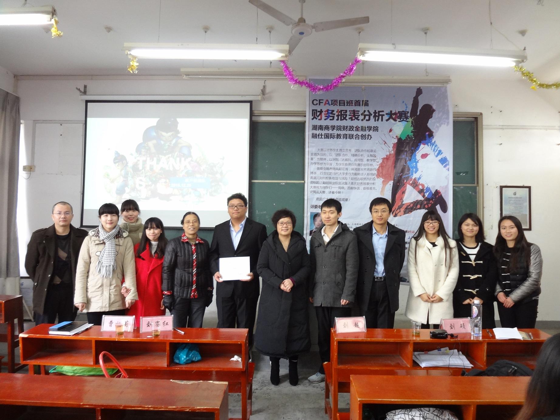 20151227上午在D202湖南商学院财政金融学院与融仕国际教育共同举行了CFA实验班首届财务报表分析大赛。