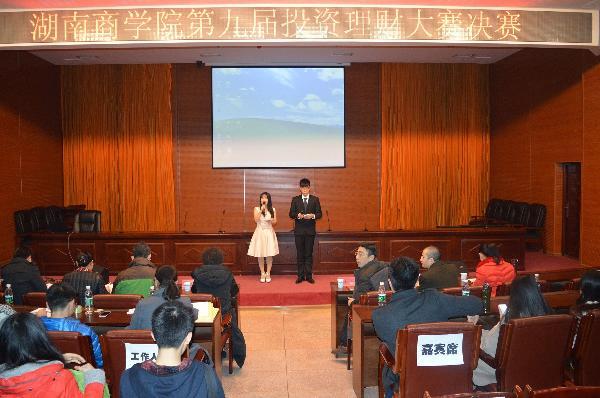 2015年12月25日晚7点,由财政金融学院组织的第九届投资理财大赛决赛在图书馆多功能报告厅顺利举行。参加此次决赛的评委有财政金融学院党总支书记刘赛红教授、副院长曹秋菊教授、副院长颜伟副教授、科研处副处长杜焱副教授、陈修谦老师、袁艳霞老师、杨立老师等。此次比赛由党总支书记刘赛红教授致开幕词,首先刘书记入围此次决赛的选手表示祝贺,同时希望选手们能在今天的决赛中有精彩发挥,预祝活动取得圆满成功。