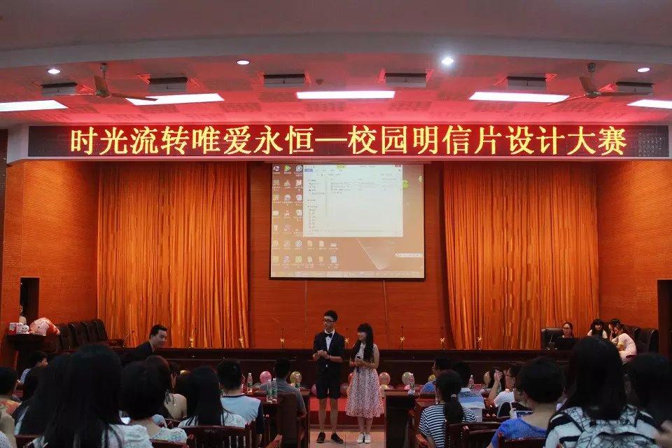 2015年5月25日,由财金学院与经贸学院心育部共同举办的主题为“时光流转,唯爱永恒”的校园明信片设计大赛。旨在通过设计明信片,引起同学们对大学生恋爱现状的思考,达到“不教而化,润物细无声”的作用,引导大学生树立正确恋爱观。参赛选手以个人或者是组队方式参赛,采用手绘和电子版两种形式参赛,激发了学生们的积极性和创新思维。经过初赛的选拔,最后决赛在图书馆多功能报告厅内举行。