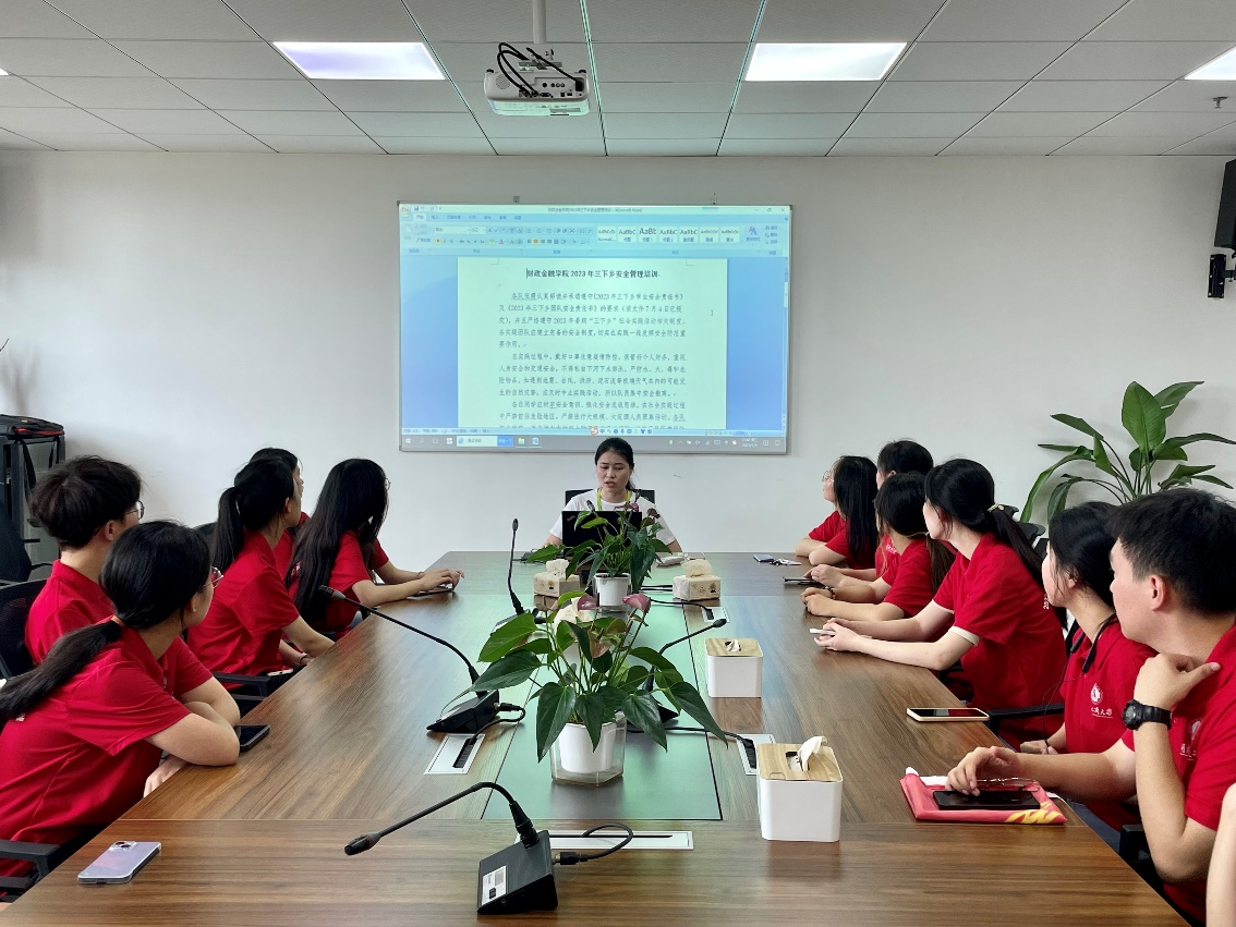 为支持学院三下乡工作开展,财政金融学院于各团队出征前召开安全培训会,会议由学院团委书记宋明月老师主持,学院党委副书记尹元元老师和肖劲松老师、六支立项队伍同学及带队老师参加会议。