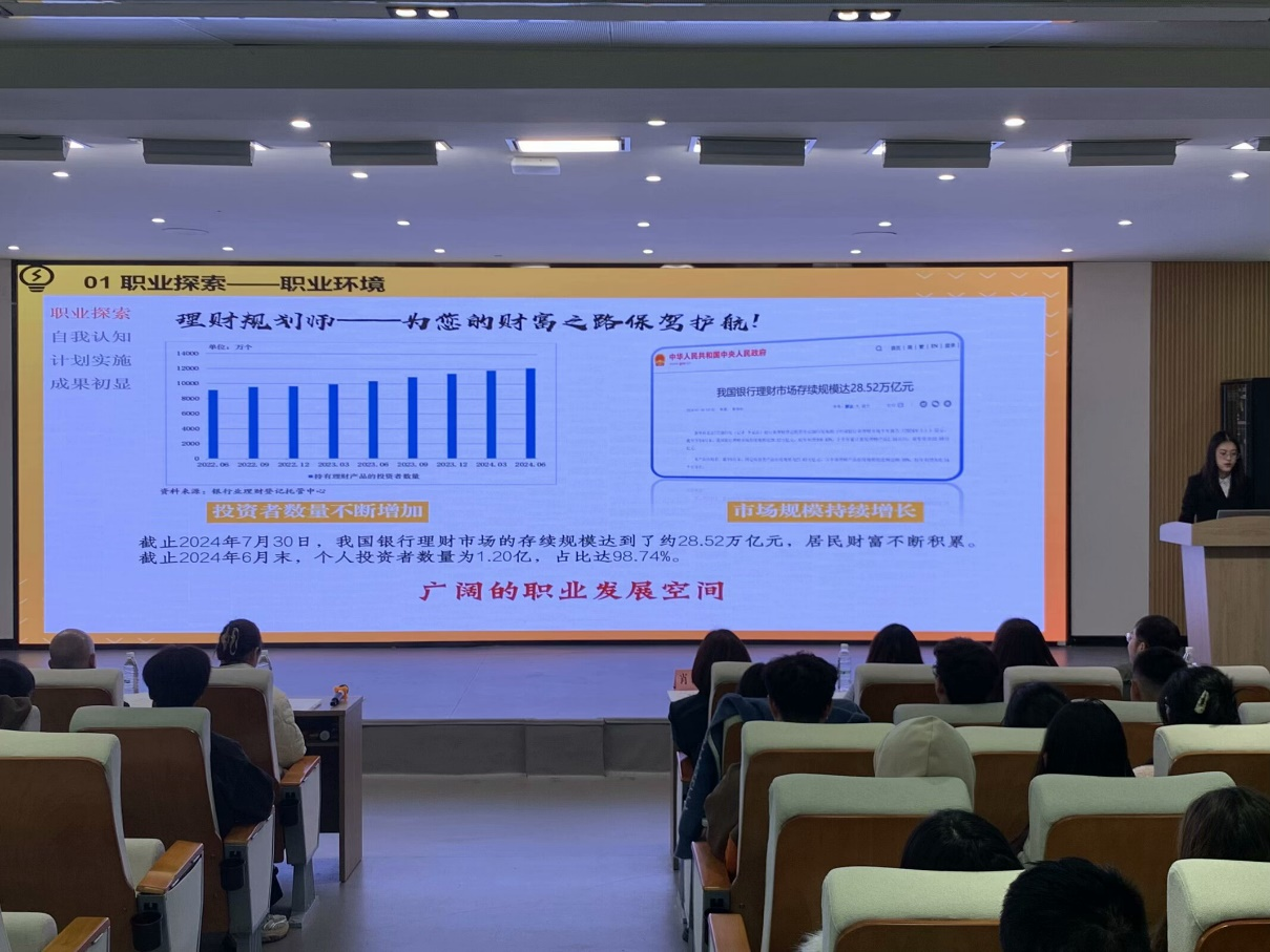 筑梦青春志在四方,规划启航职引未来。为深入学习贯彻党的二十届三中全会和全国教育大会精神,全面落实中共中央、国务院《关于实施就业优先战略促进高质量充分就业的意见》精神,进一步增强我院大学生生涯规划意识,提升就业能力,促进高质量充分就业,2024年11月28日晚上,财政金融学院在北校区追光楼3101报告厅举办第二届全国大学生职业规划大赛院赛。学院党委副书记肖劲松,学院辅导员宋明月、罗芯柔、谢玮、伍君、刘振宇、裘丽雯担任评委。