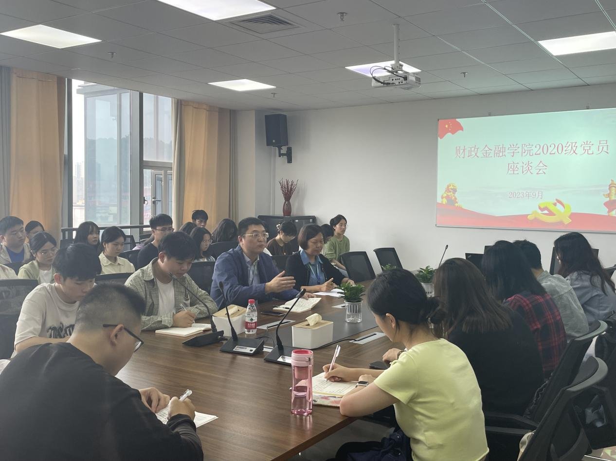 2023年9月26日中午,财政金融学院在湘江楼B601举办2020级学生党员座谈会,本次座谈会由学生党建专干罗芯柔主持,学院党委书记尹元元、副书记肖劲松以及全体2020级学生党员参会。