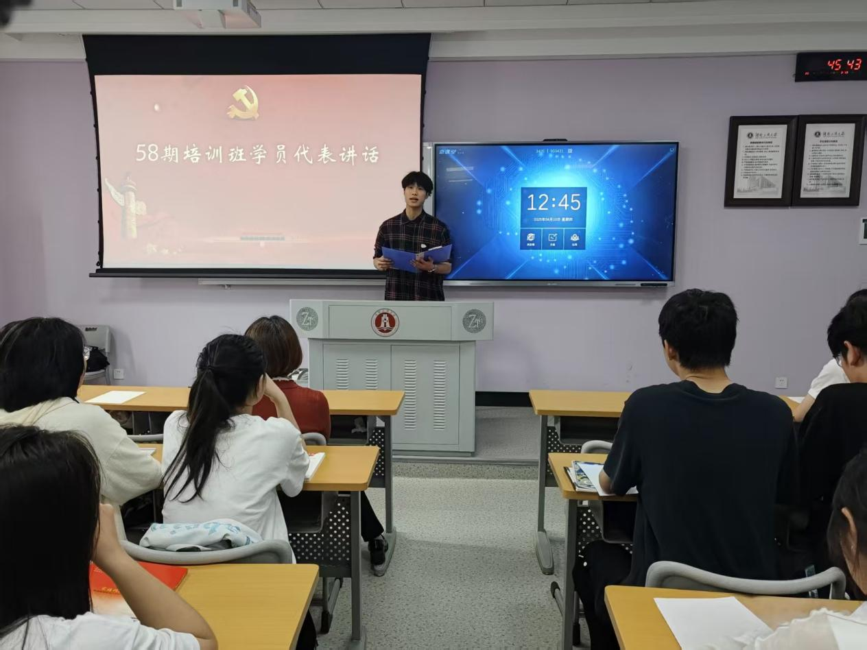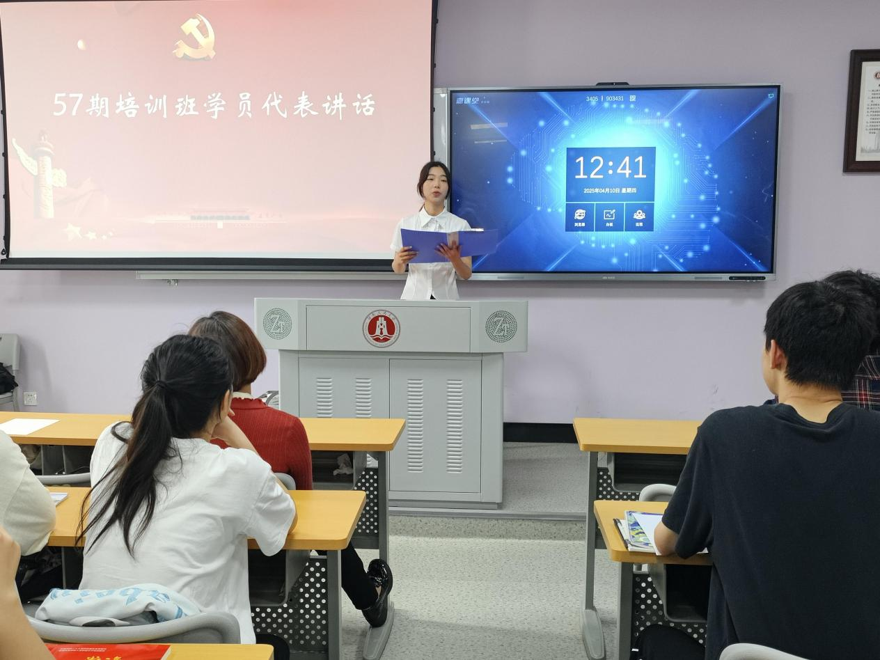 开班仪式上,学院分党校班主任罗芯柔宣读入党积极分子培训班相关规定,对本次参与培训学员提出纪律和学习方面的要求。57期学员代表李嘉钰分享党校学习心得,倡议学员以党员标准严格要求自己。58期学员代表李铭卿讲述自己对共产党的向往,并倡导学员们为成为合格的社会主义建设者和接班人而奋斗。