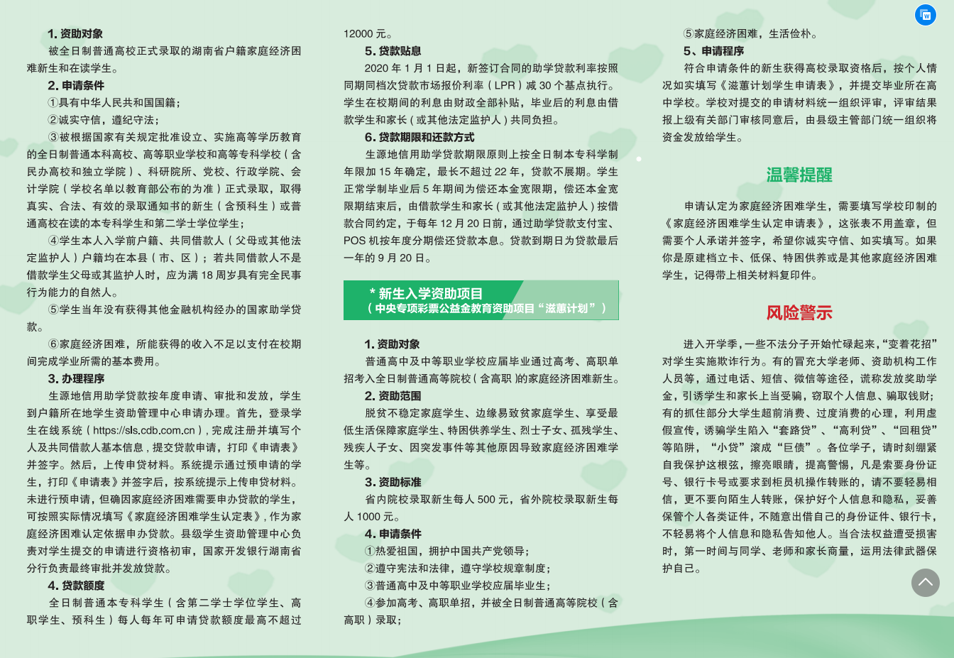 学生资助政策宣传手册