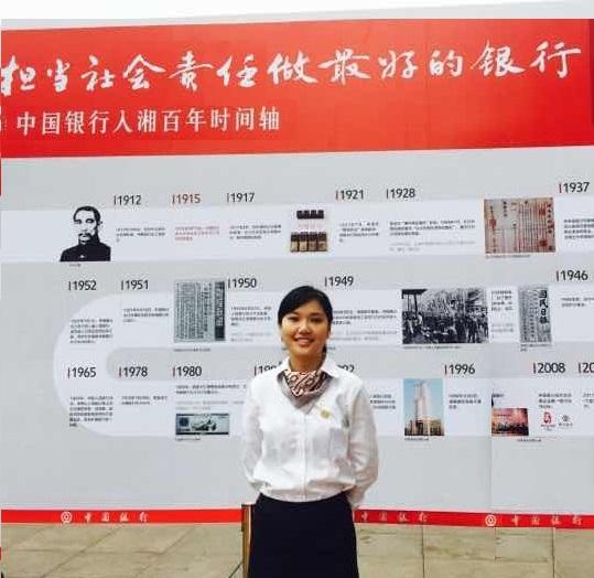2008年本科毕业,同年考入中国银行湖南省分行工作,历任银行柜员、客户经理、营销副行长,现任中国银行长沙湘江北路支行行长。