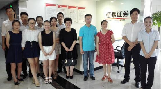 7月18日上午,财政金融学院党总支书记刘赛红教授率检查组分赴恒泰证券、瀚益投资等校企合作人才培养基地,检查暑期实习工作的开展情况。