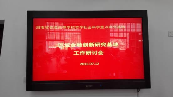 7月12日上午,湖南省普通高等学校人文社会科学重点研究基地——区域金融创新研究基地在我校一办公楼521会议室召开了工作研讨会。财政金融学院院长欧阳资生教授主持会议,基地负责人刘赛红教授对研究方向分工和基地建设任务进行部署,各方向负责人及成员对研究方向建设与个人科研目标设想进行了阐述。会议还对《区域金融创新研究基地分方向年度建设任务落实管理方案》、《区域金融创新研究基地科研奖励方案》进行了讨论。科研处杜焱副处长介绍了省教育厅在基地管理方面主要的政策措施,并以此对基地建设任务和奖励方案提出了指导性意见。科研处处长周鲜成教授对财政金融学院在学科和科研平台建设上取得的突出成绩表示祝贺,并指出此次会议的召开对基地建设具有重要的推动作用,是落实“三严三实”工作作风的重要表现,希望基地建设在论文、课题等科研成果等级上要制定更高目标,进行高水平的科研平台建设,并全面参与“十三五”省级重点学科申报与建设。