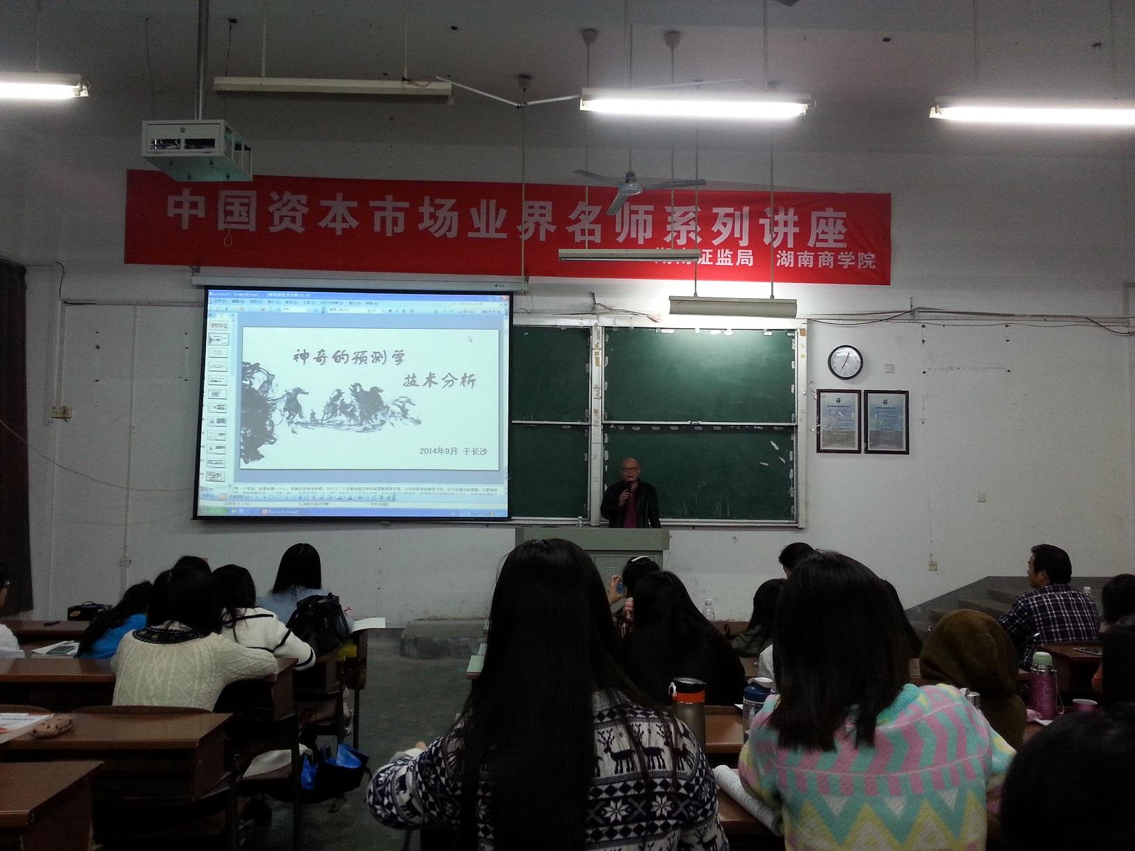 本次讲座由金证顾问首席分析师陈自力先生主讲。陈老师证券从业近20年,致力于研究波浪理论,在实战中不断修正,形成具有A股特色的波浪理论分析体系,擅长以波浪理论、形态分析、循环周期及市场情绪分析国内外金融市场走势。陈老师讲课以预测工具—易经开篇,激发了广大同学的学习兴趣。陈老师主讲的内容主要有K线、形态可以判断短期的市场方向,技术指标可以判断市场的高低,成交量可以判读市场多空力量,道氏理论判断市场趋势,江恩理论可以判断时间窗口,波浪理论可以判断市场涨跌空间等技术分析相关知识。